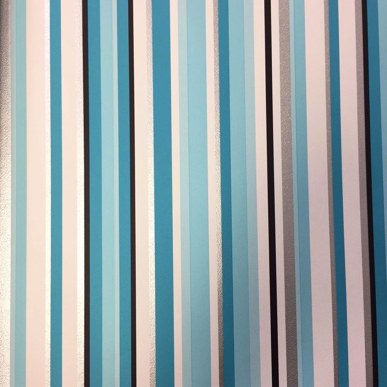 Teal Stripe Metallic Wallpaper Silver Blue White Black Striped Modern Luxury x 3
