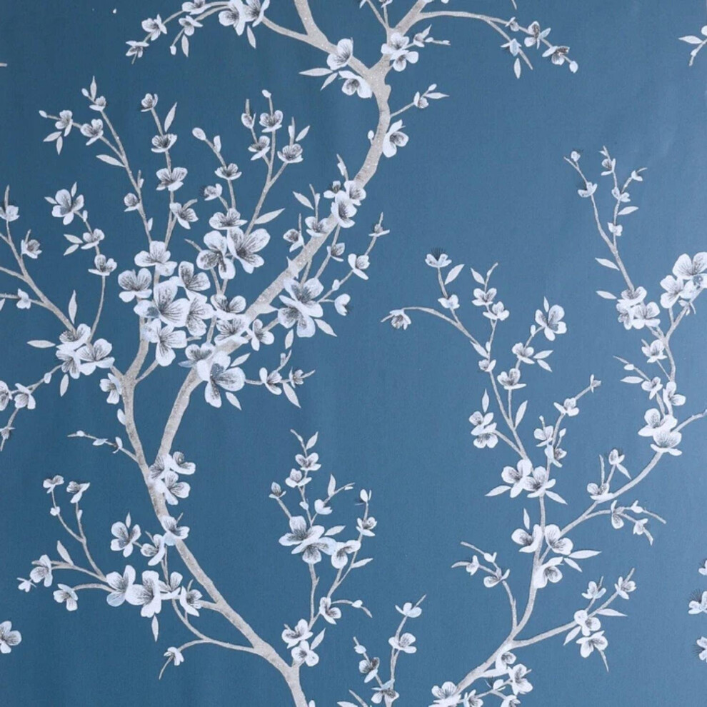 ARTHOUSE ORIENTAL GLITTER BLUE TRAIL TEAL WHITE BLOSSOM FLOWERS FLORAL WALLPAPER