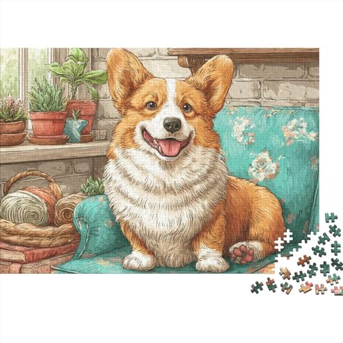Cute Pet Dog 1000 Pc Eco-Friendly Paper Puzzle for Seniors, Stress Relief Activity Corgi on Teal Couch Ideal Wall Art & Collection Gift 70x50cm/1000pcs