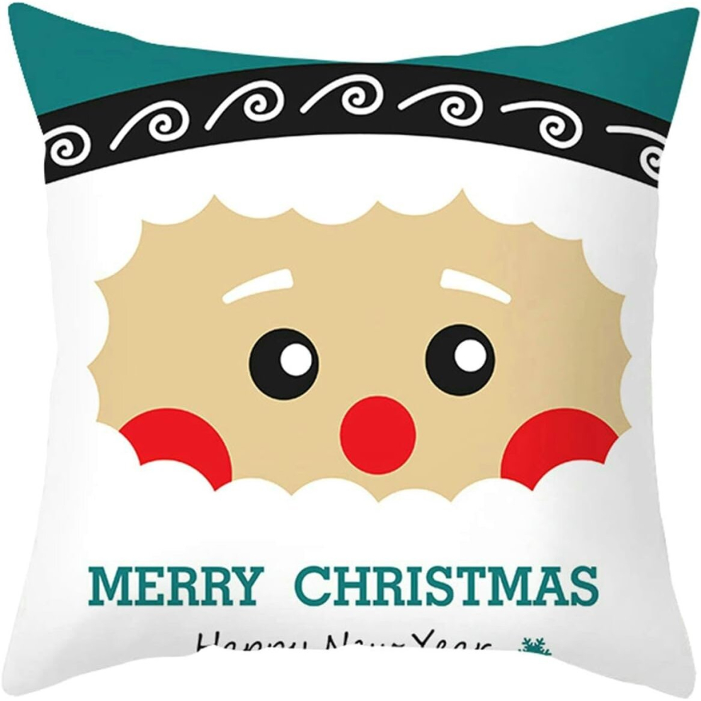 Pillow Cover Xmas, Santa Face Merry Christmas Pillowcase Cover Couch 40x40cm Pillows Covers for Couch Teal White