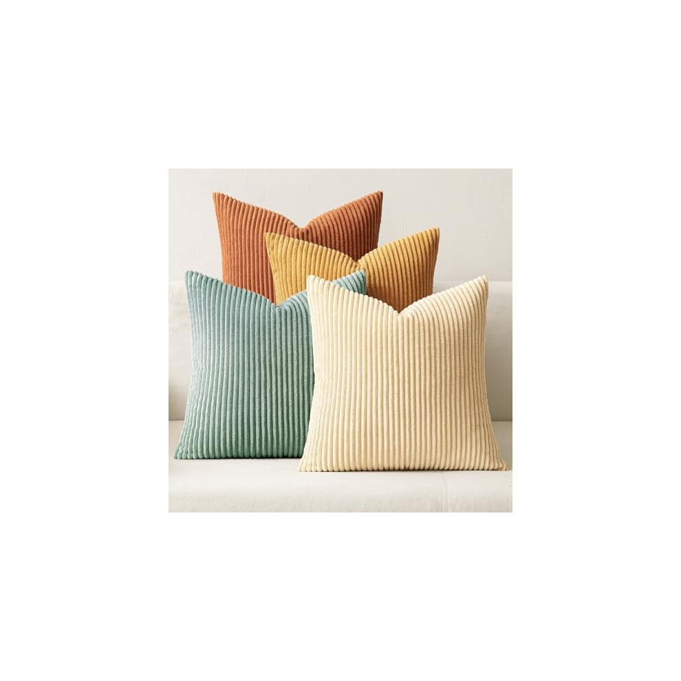 Boho Farmhouse Throw Pillow Covers 20x20", Set of 4, Corduroy, Orange & Teal Gradient, for Couch/Bed/Sofa â Compatible with Standard Inserts