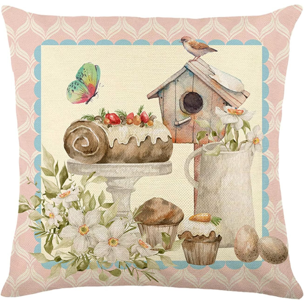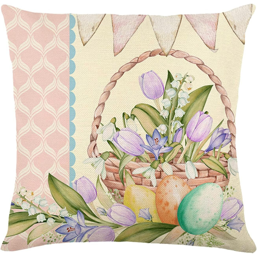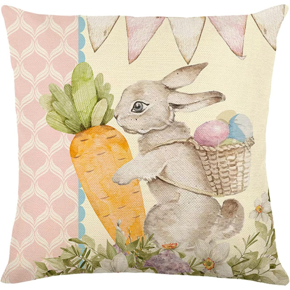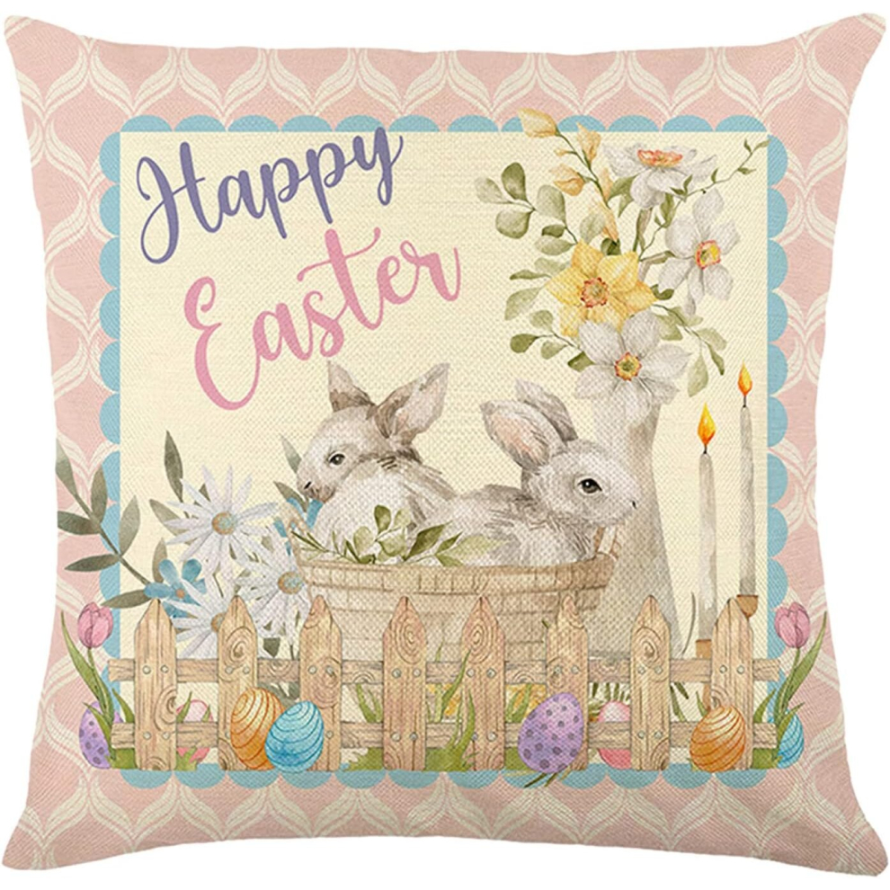 Happy Easter Throw Pillow Covers 18x18 Easter Bunny Egg Spring Home Decor for Couch Teal Decorative Pillows (D, One Size)
