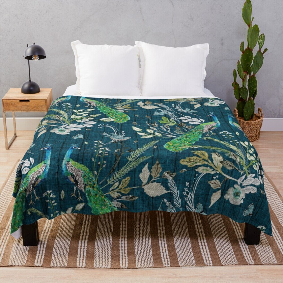 Fleece Throw Blanket Peacock Chinoiserie (teal) for Sofa Couch Kids 60 x 50 Inches