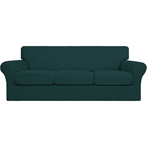 Easy-Going 4 Pieces Stretch Soft Couch Cover for Dogs - Washable Sofa Slipcover for 3 Separate Cushion Couch - Elastic Furniture Protector for Pets, Kids(Sofa,Deep Teal)