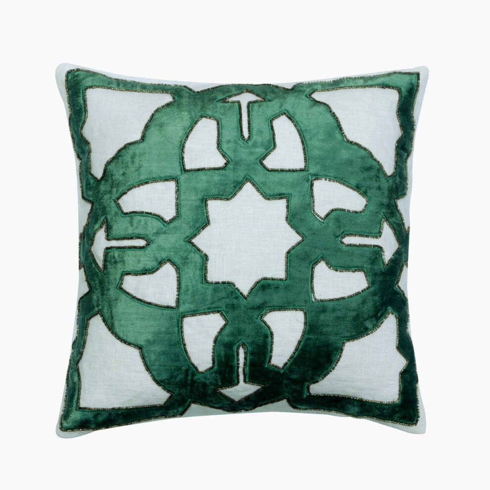 Cushion Cover for Couch, Teal Blue 22"x22", Velvet & Linen Greek Applique Pillow Cover, Abstract Modern Style - Rhea
