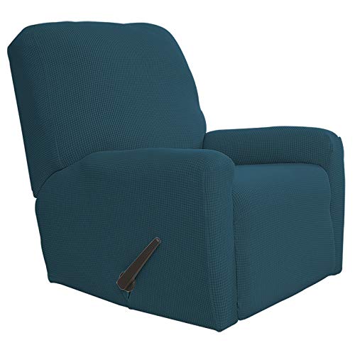 Easy-Going Recliner Stretch Sofa Slipcover Sofa Cover 4-Pieces Furniture Protector Couch Soft with Elastic Bottom Kids Spandex Jacquard Fabric Small Checks(Recliner,Deep Teal)