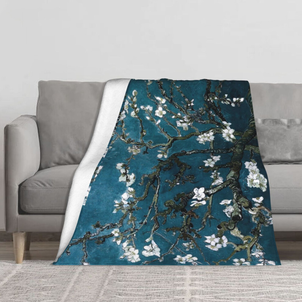 Fleece Throw Blanket Van Gogh Almond Blossoms Dark Teal for Sofa Couch Kids 60 x 50 Inches