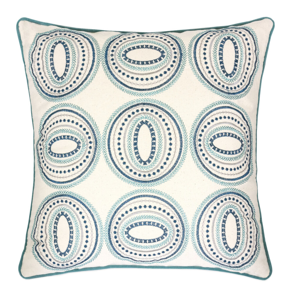Homey cOZY Embroidery cotton Throw Pillow cover,connelly Aqua and Teal Decorative Square couch cushion Pillow case 20 x 20 Inch, cover Only