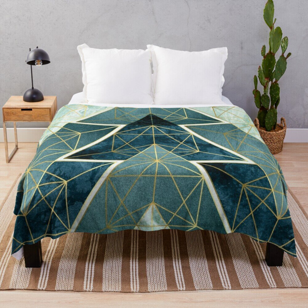 Fleece Throw Blanket Geometric Excellence in Teal for Sofa Couch Kids 60 x 50 Inches