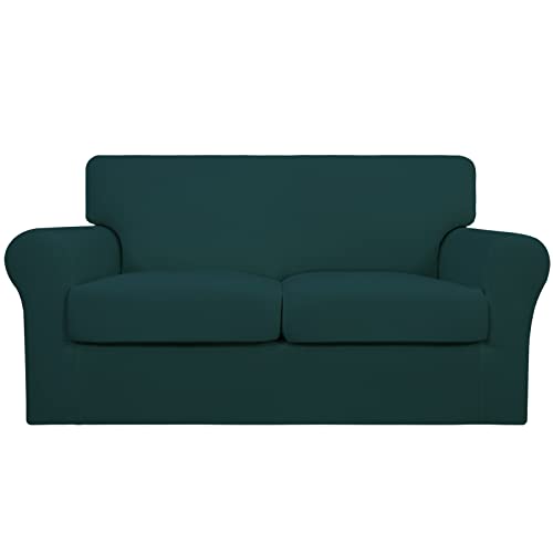 Easy-Going 3 Pieces Stretch Soft Couch Cover for Dogs - Washable Sofa Slipcover for 2 Separate Cushion Couch - Elastic Furniture Protector for Pets, Kids(Loveseat,Deep Teal)