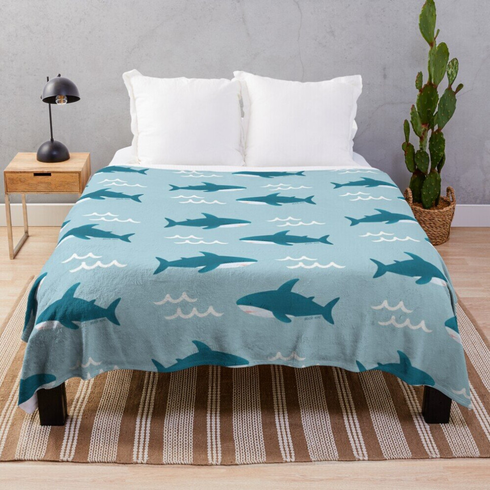 Fleece Throw Blanket Brucie/Blahaj ikea shark pattern (Teal) for Sofa Couch Kids 60 x 50 Inches