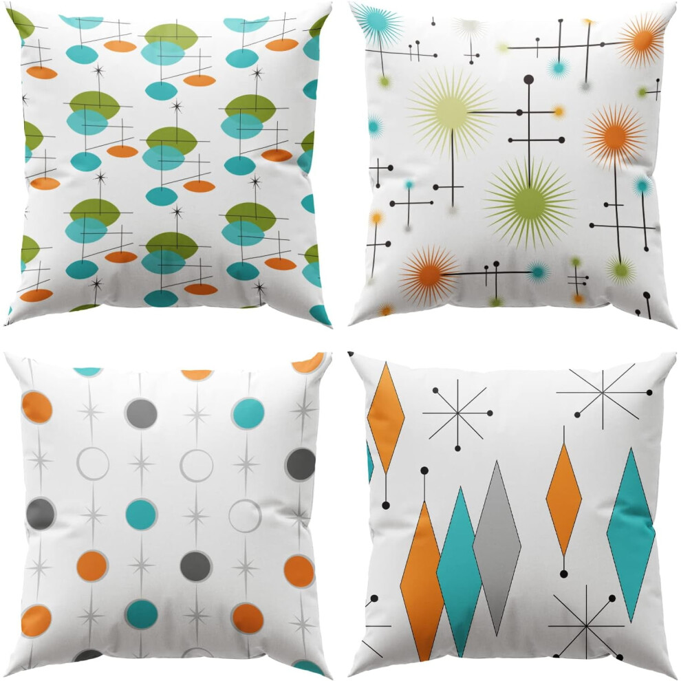 Mid Century Pillow Covers Modern Decor Atomic Stars Pillow Cases Retro Throw Pillows Covers Teal Orange for Couch Sofa Bed 18x18 Set of 4