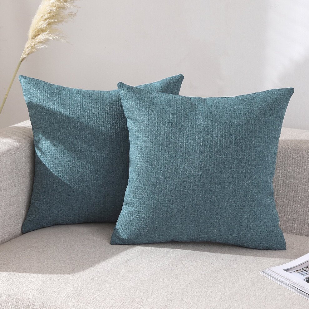 Woven Textured Throw Pillow Covers Cushion Cases Pack of 2 Solid Linen Decorative Square Pillow Covers for Sofa Bed Couch, Teal Blue 16x16 Inch
