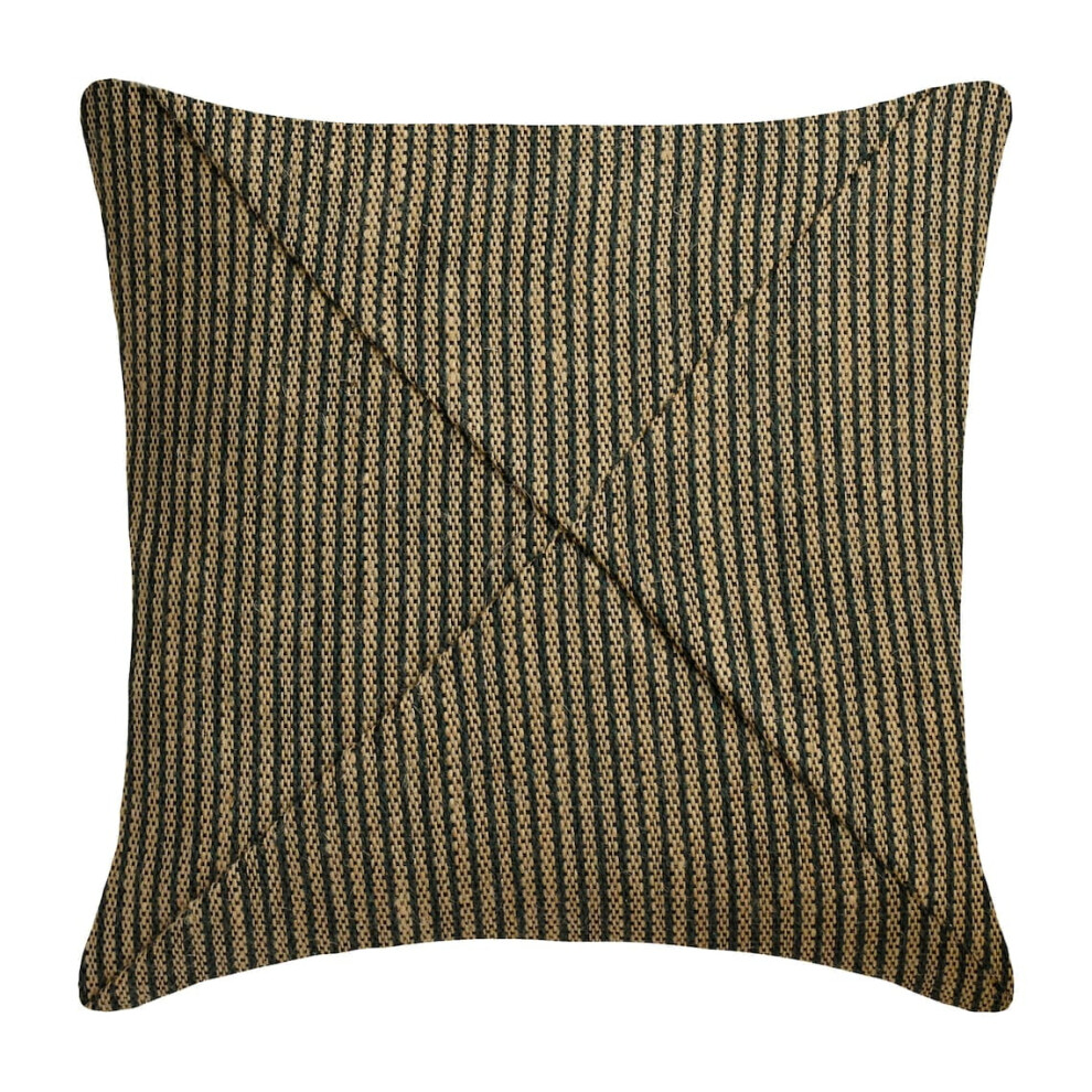 Cushion Covers 22"x22" for Couch, Teal Green & Beige Striped Jute & Linen Throw Pillow Covers, Contemporary Style - Jute Combo