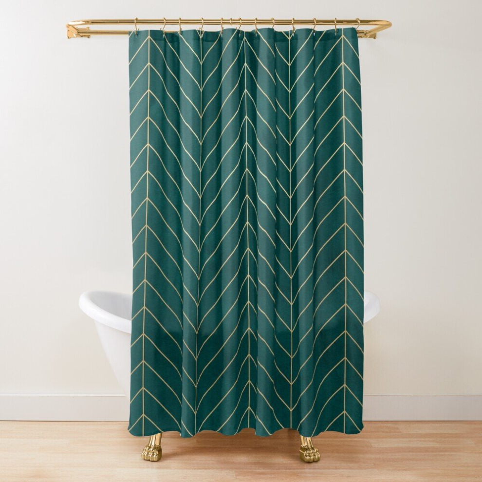 Shower Curtains Teal Gold Chevron for Bathroom Decor 72x72 inches