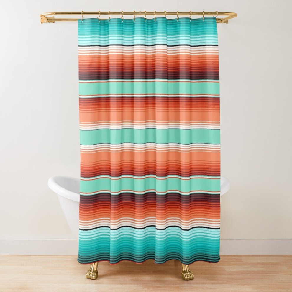 Shower Curtains Teal Turquoise and Burnt Orange Southwest Serape Blanket Stripes for Bathroom Decor 72x72 inches