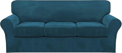 SANBDDLYY Sofa Cover 4-Piece T Cushion Slipcovers Velvet Couch Covers for 3 with Individual (Ivory,2 Sofa)(Deep Teal,3 Cushion Sofa)