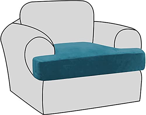 LINFKY Stretch Velvet T Cushion Chair Covers for Living Room, Armchair Sofa Cover Couch Cover Slipcover T Cushion Seat Cover Stay with Elastic Bands (Deep Teal)