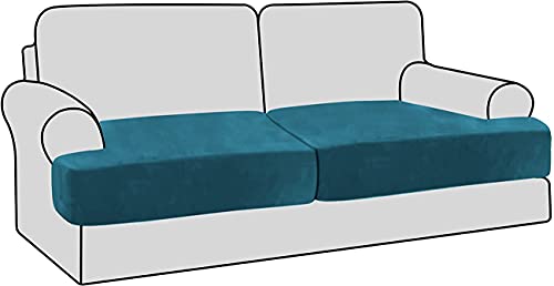 LINFKY Stretch Velvet Non-Slip 2 Piece Sofa Couch T Cushion Cover - Removable Sofa Seat Covers with Elastic Bands, Washable Elastic Furniture Slipcovers Protector for Kids and Pets (Deep Teal)