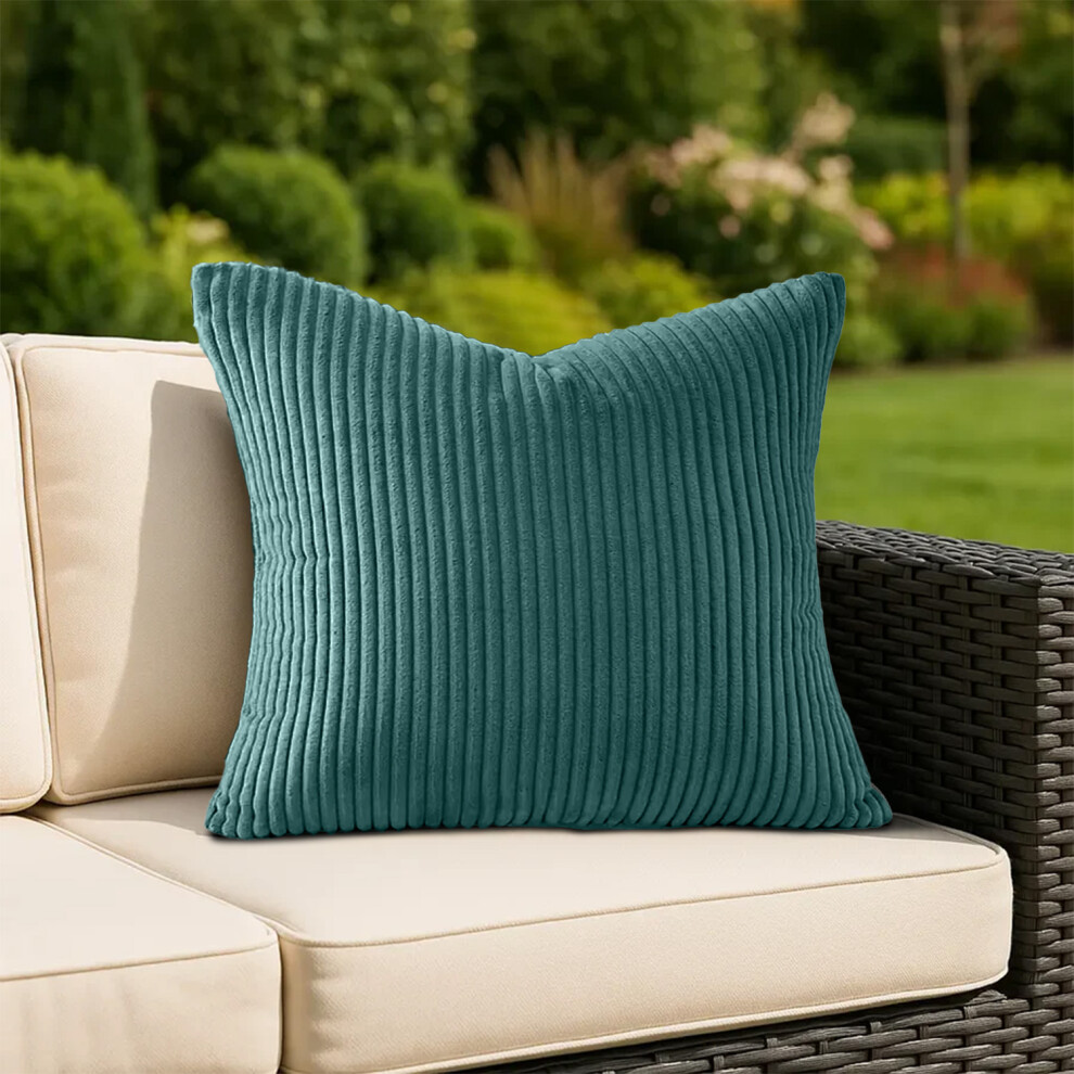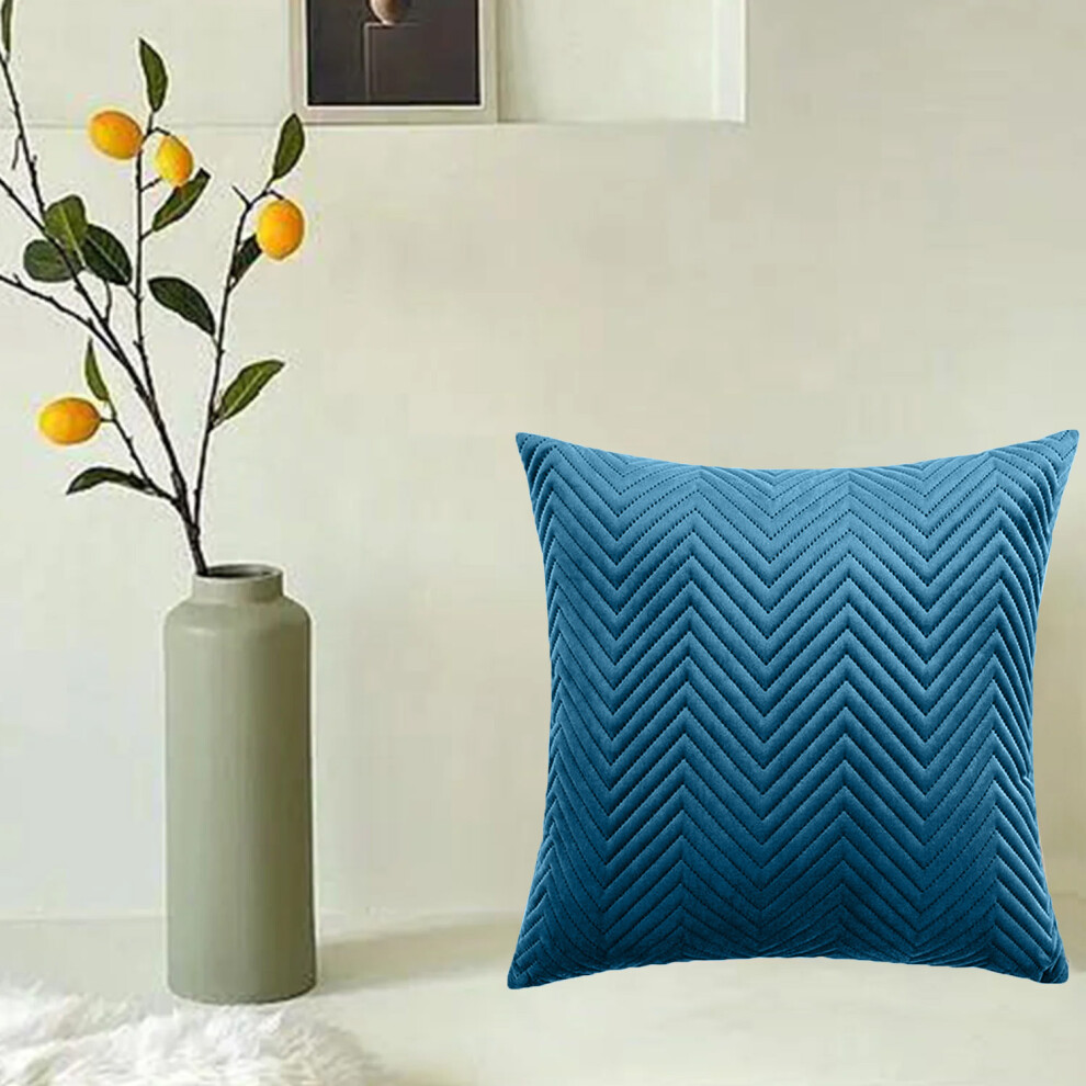 (Pack of 1, Plain Teal Cushions) Velvet Cushion Covers Soft Luxury Embossed Stripe Quilted Cushions Pack of 1,2 & 4