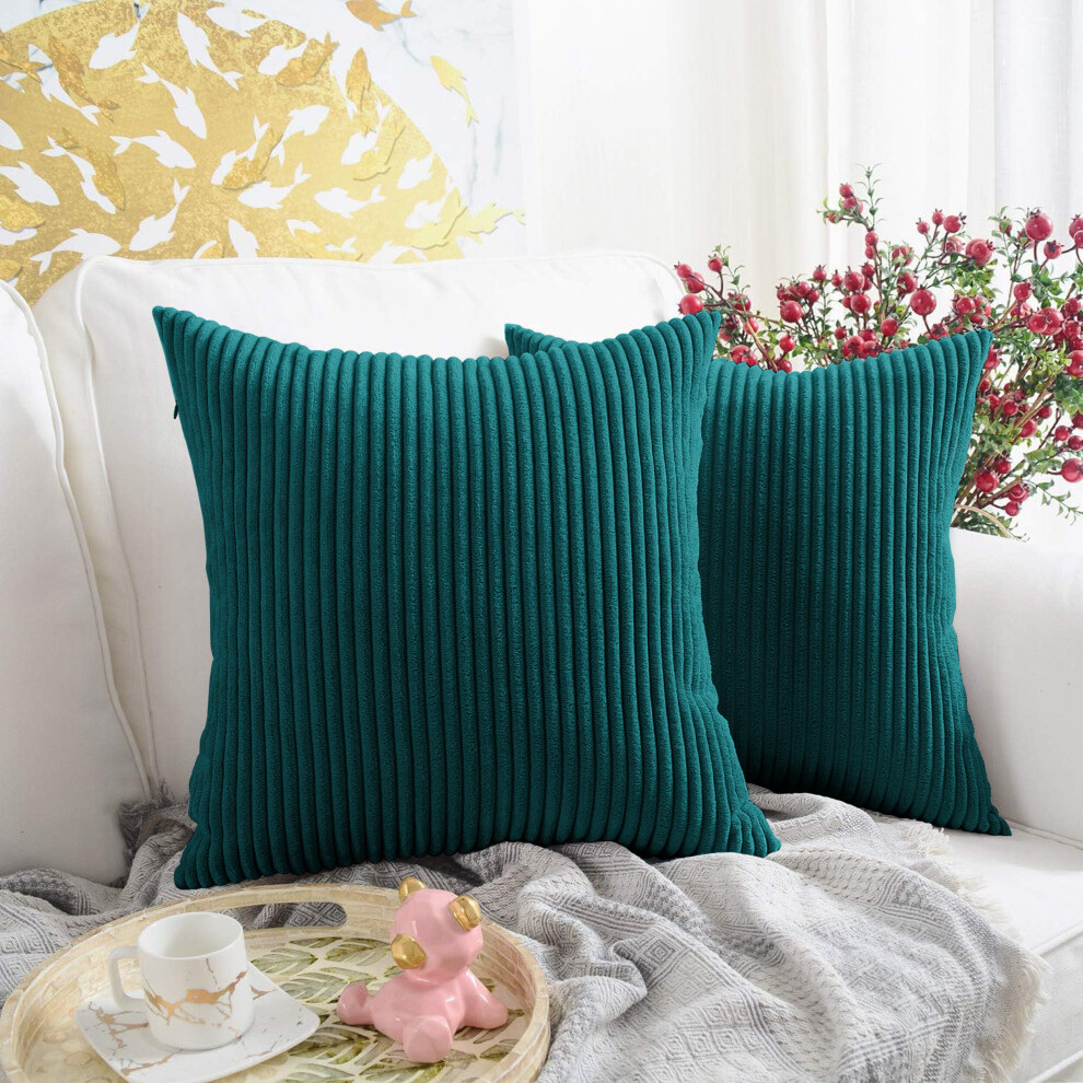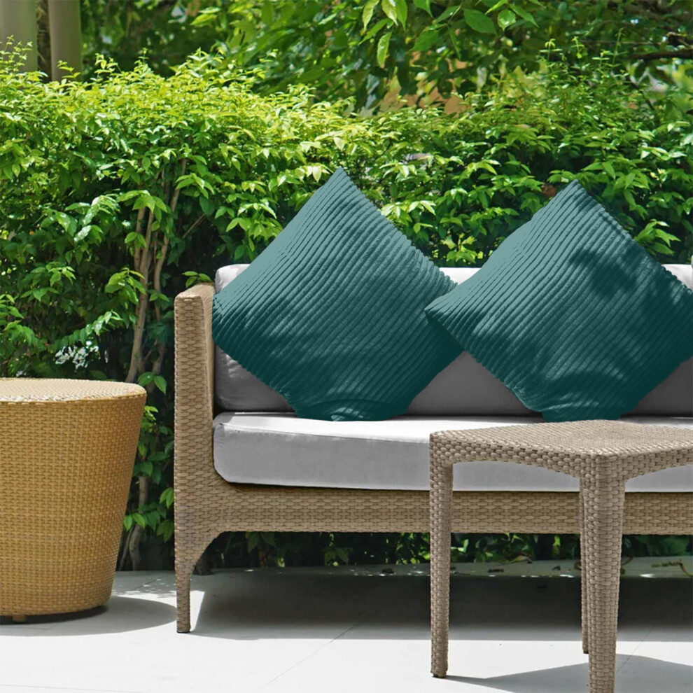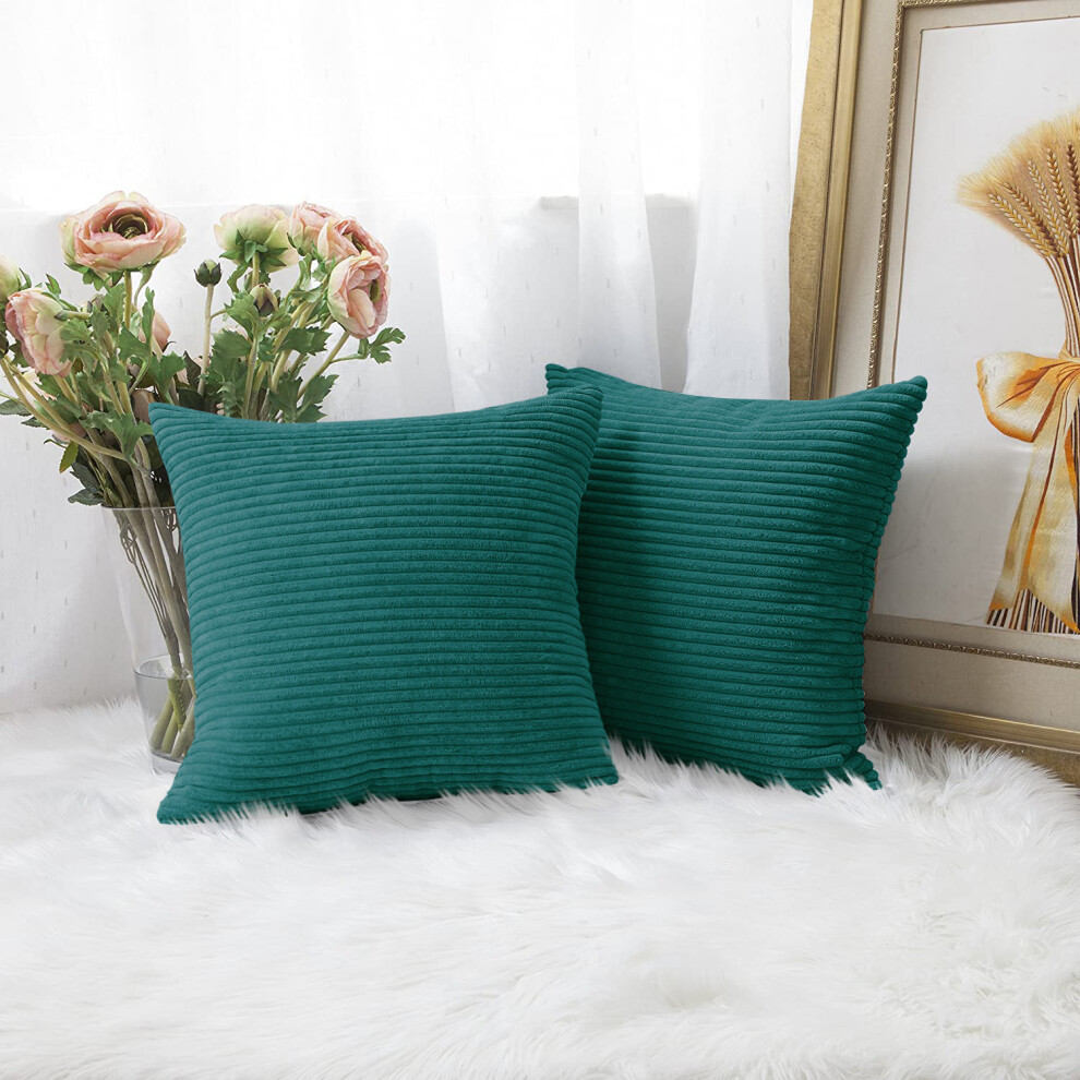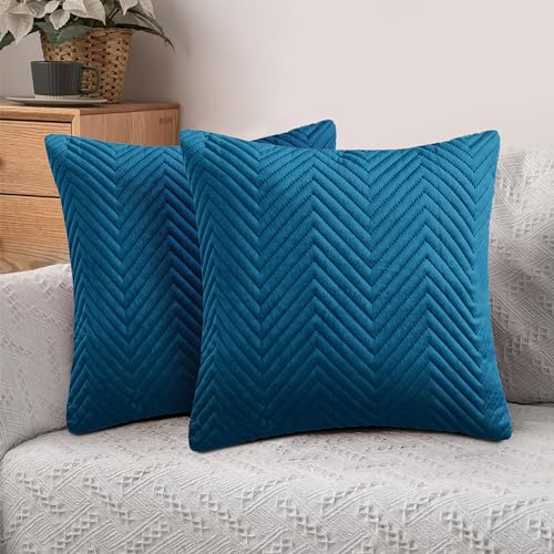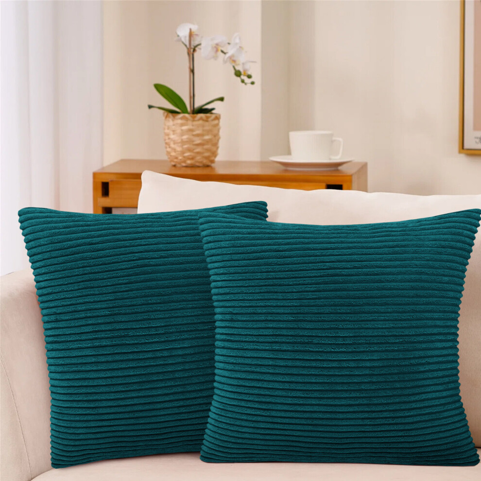 (Pack of 2, Plain Teal Cushions) Velvet Cushion Covers Soft Luxury Embossed Stripe Quilted Cushions Pack of 1,2 & 4