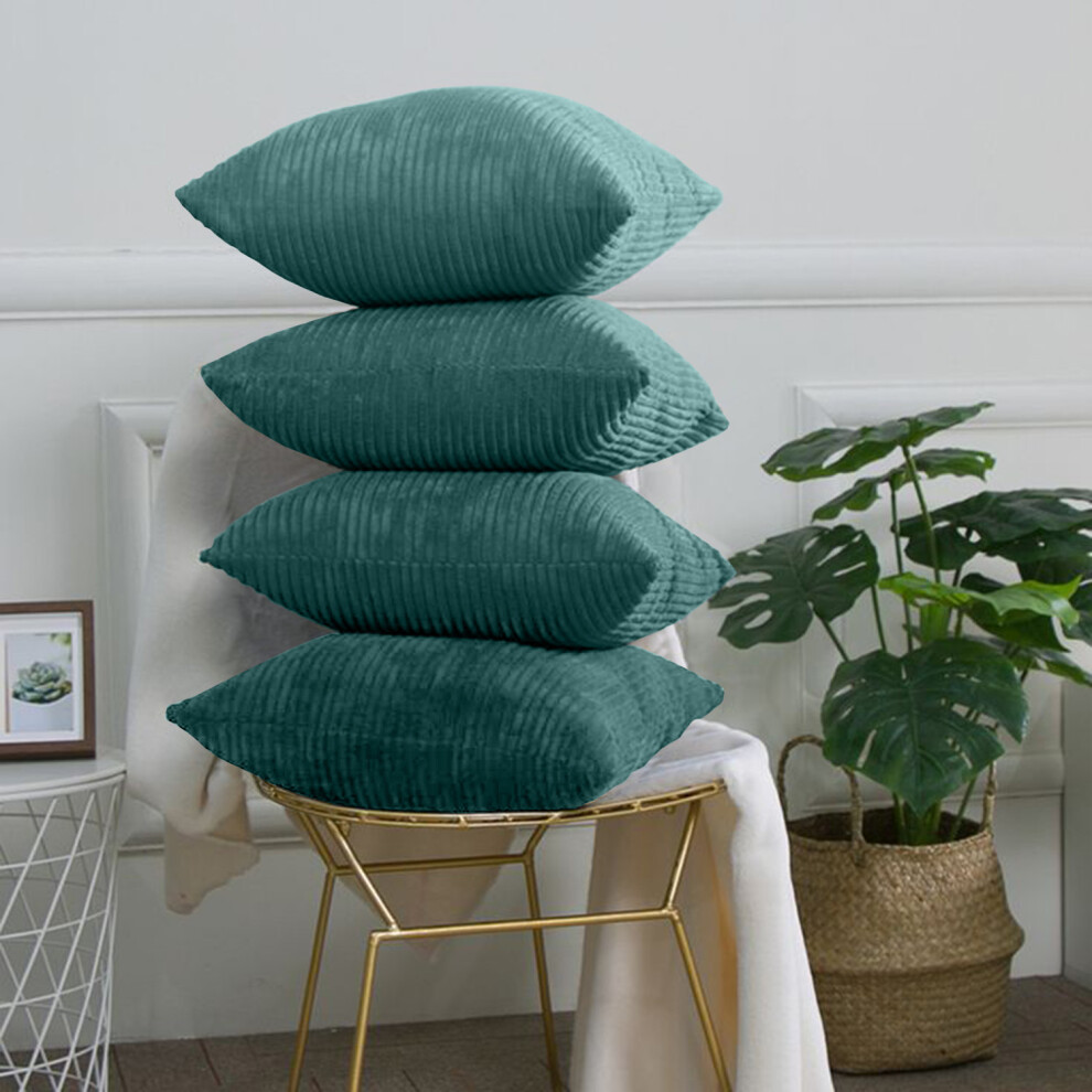 (Pack of 4, Teal) Cushion Covers Stripe Velvet Cushion Cover Pack of 1, 2 & 4