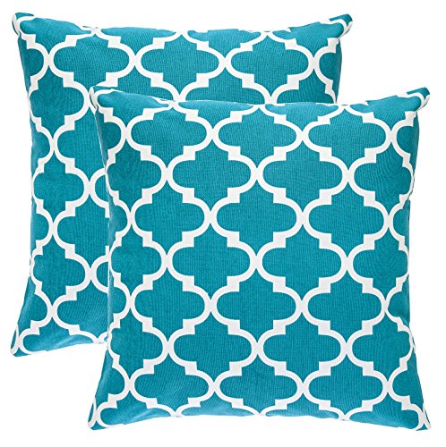 TreeWool Trellis Accent Set of 2 Cotton Canvas Cushion Covers (45 x 45 cm, Teal)