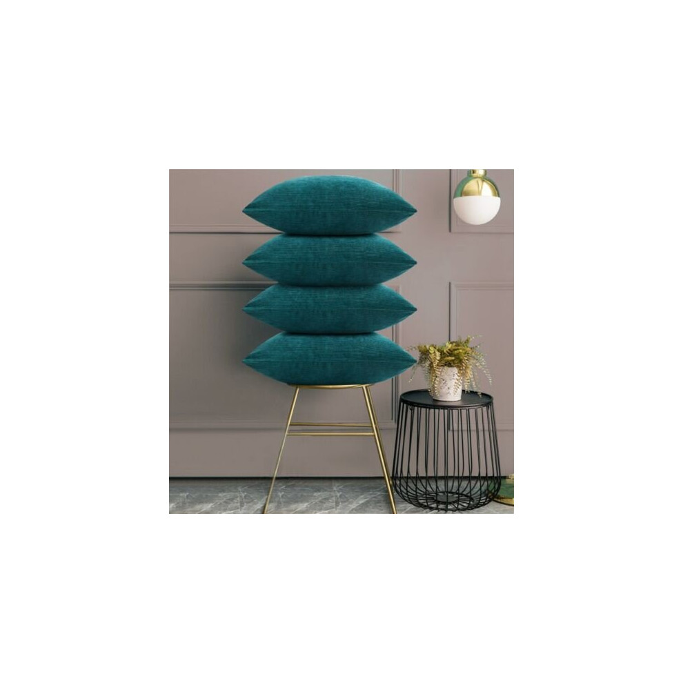 Oxford Homeware Teal Cushion Covers 45cm x 45cm (Pack of 4) Cushions with Covers Included – Decorative Velvet Cushions for Living Room Sofa Bedroom with Invisible Zipper, 18 x 18 Inches