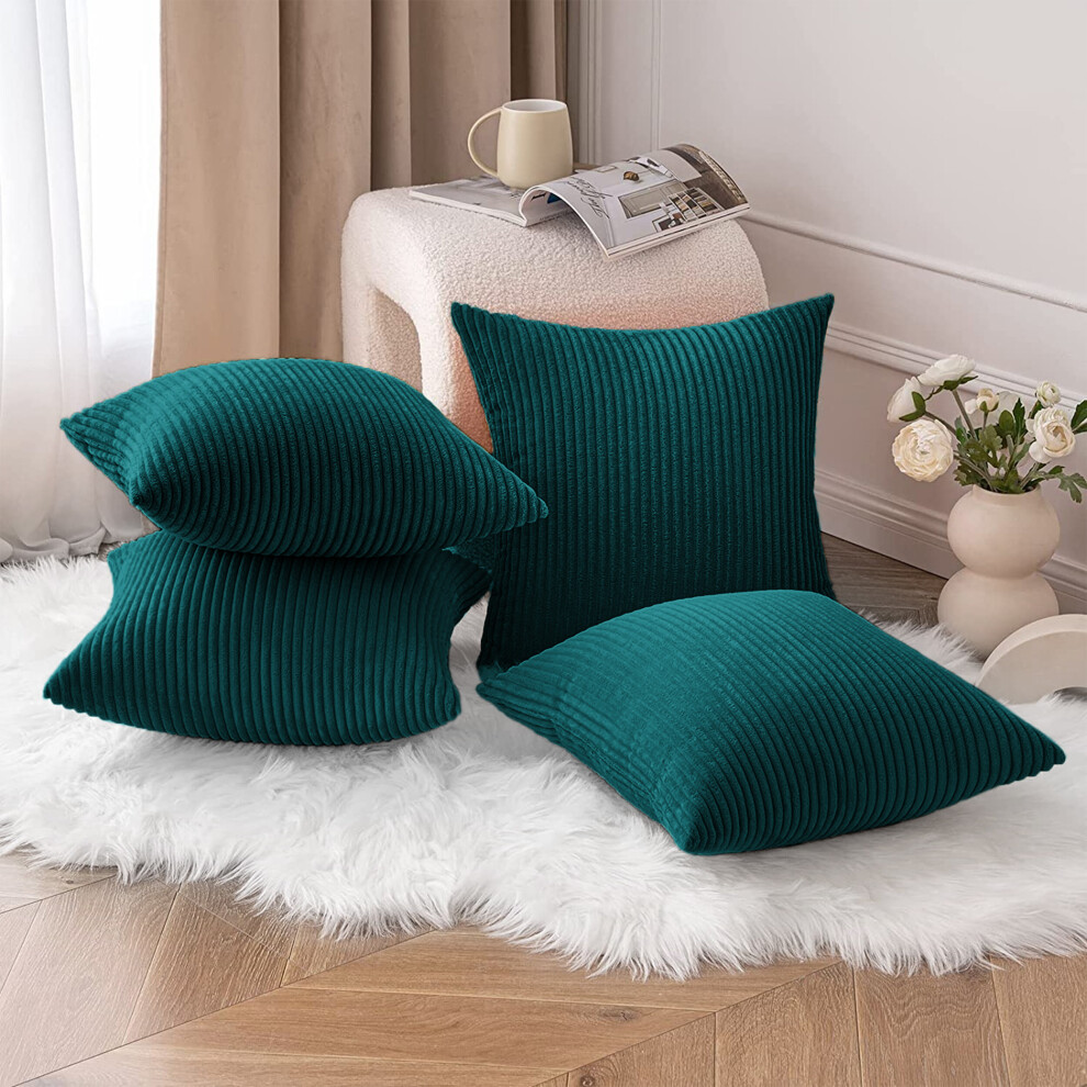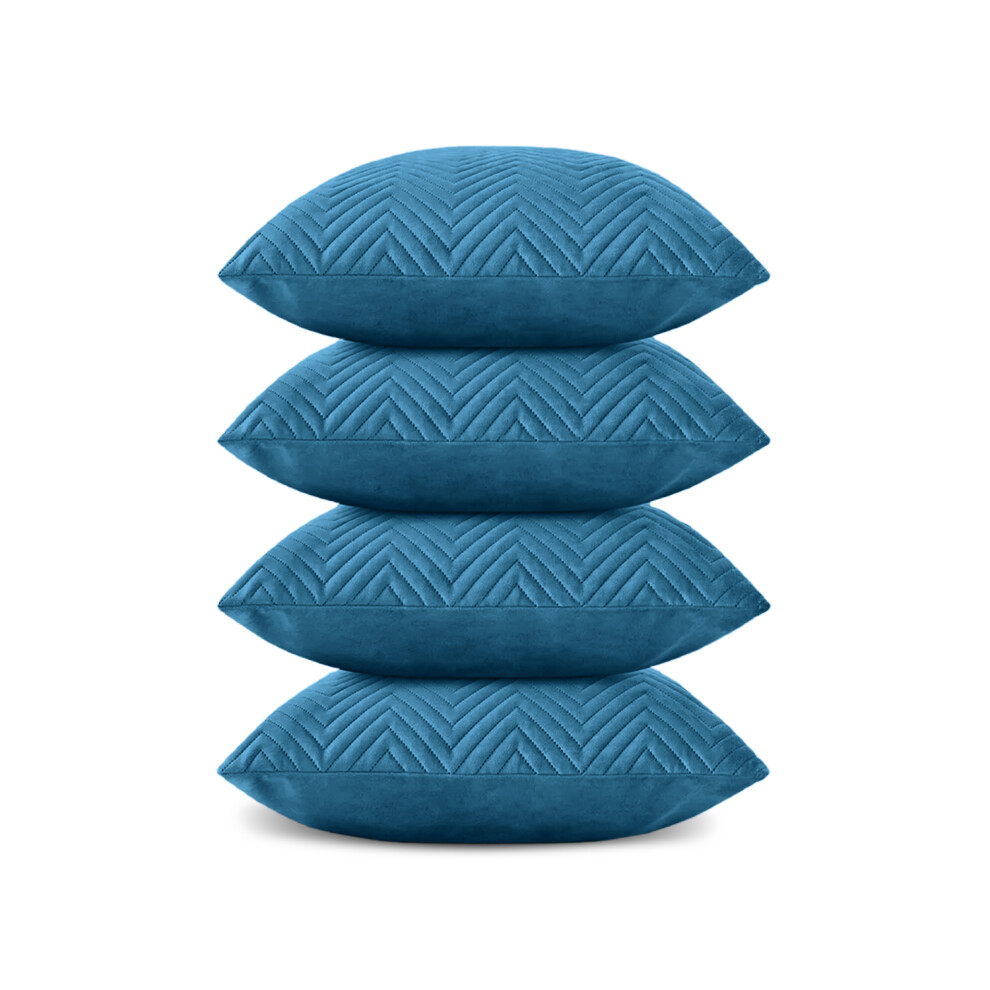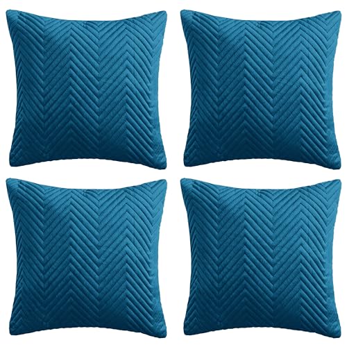 (Pack of 4, Plain Teal Cushions) Velvet Cushion Covers Soft Luxury Embossed Stripe Quilted Cushions Pack of 1,2 & 4