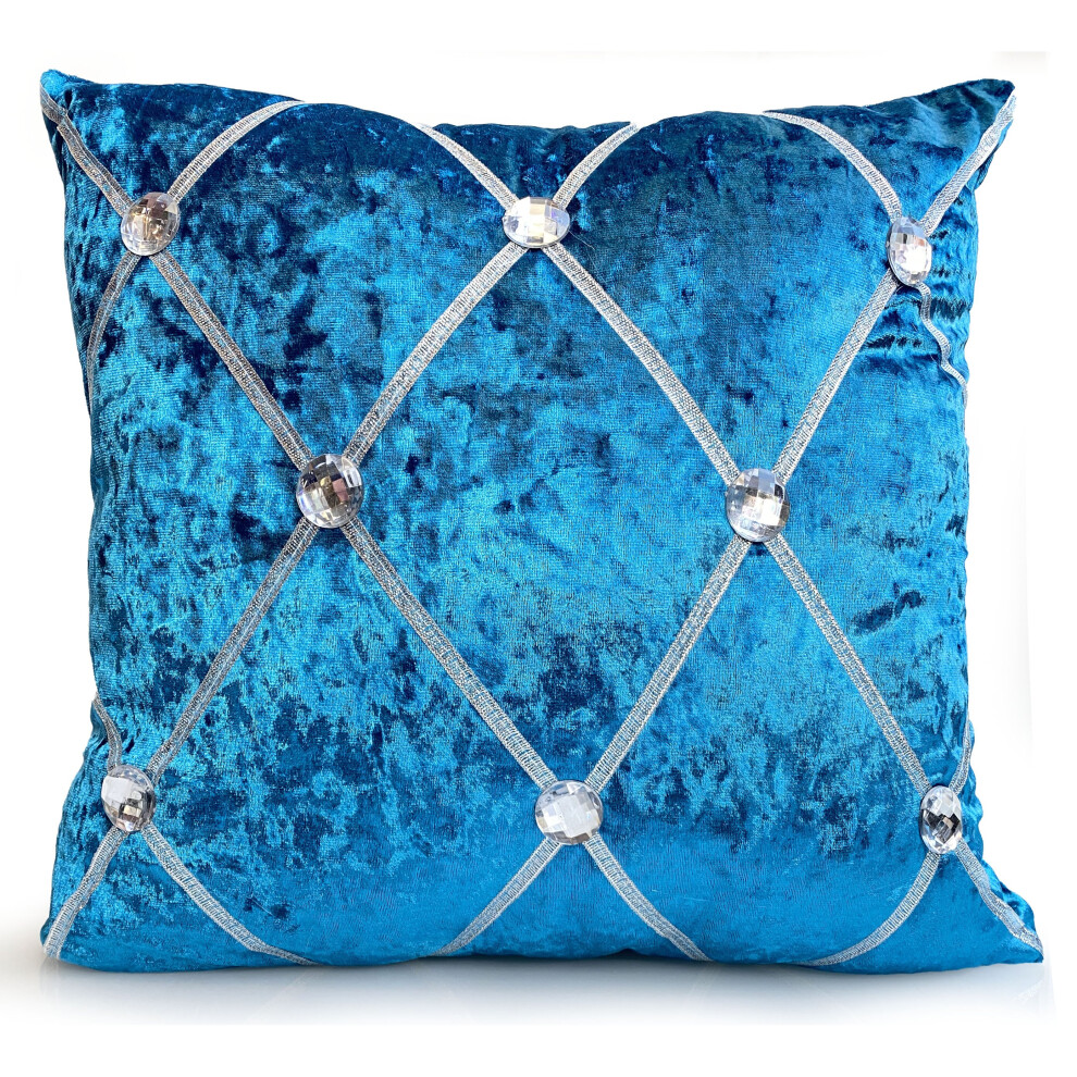 (TEAL BLUE, 17"x17" FILLED CUSHION) Crush Velvet Diamante Chesterfield Cushions or Covers