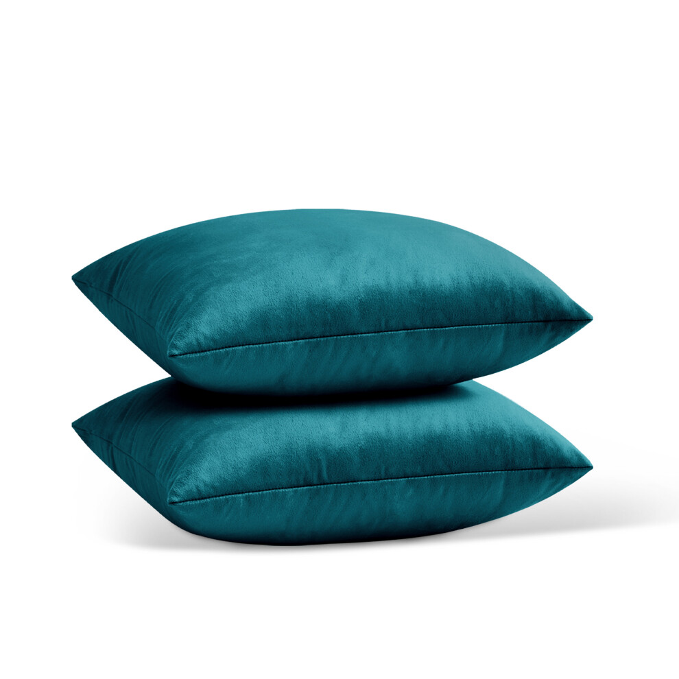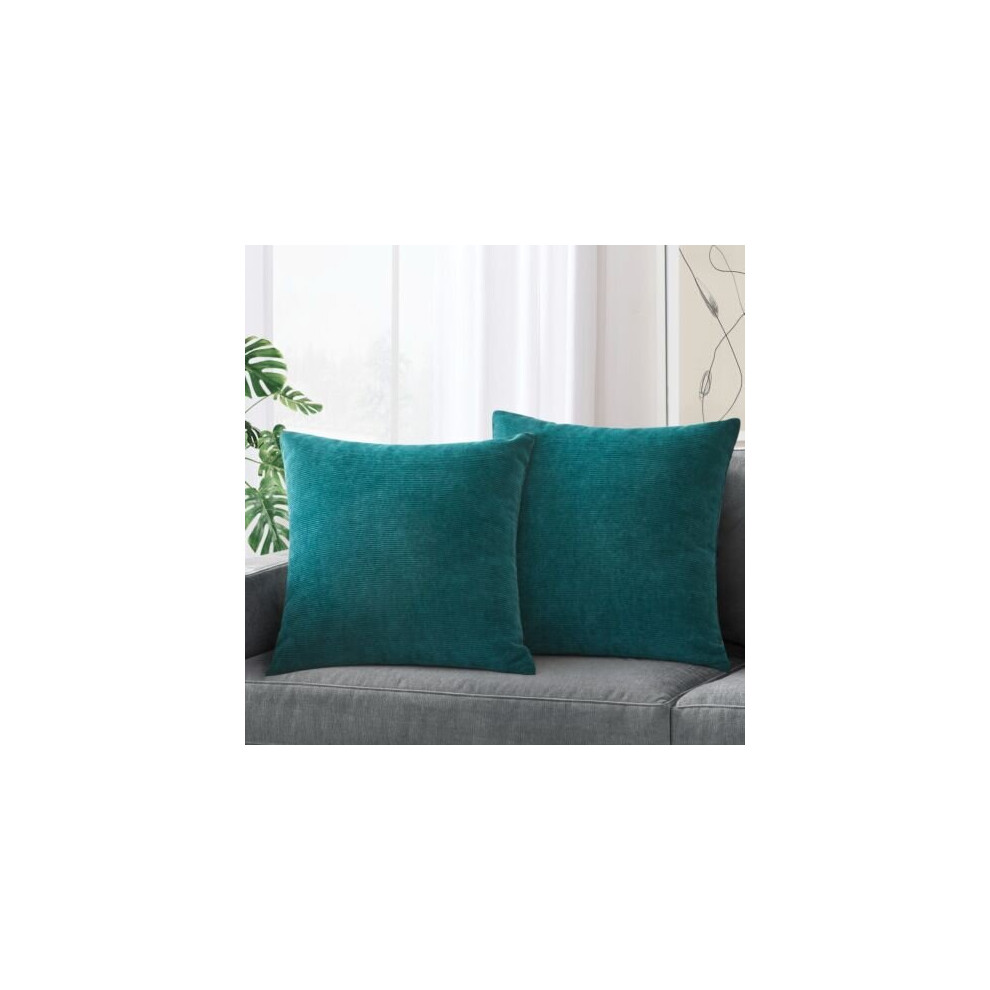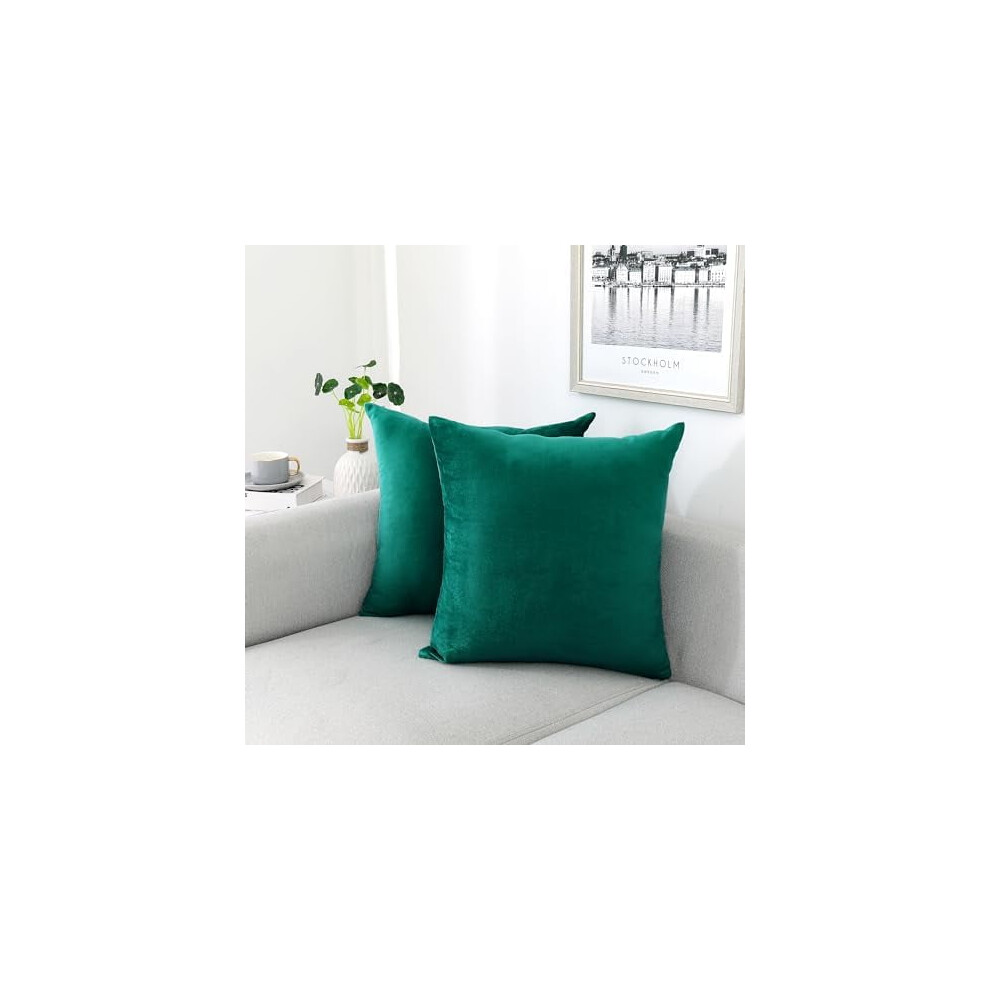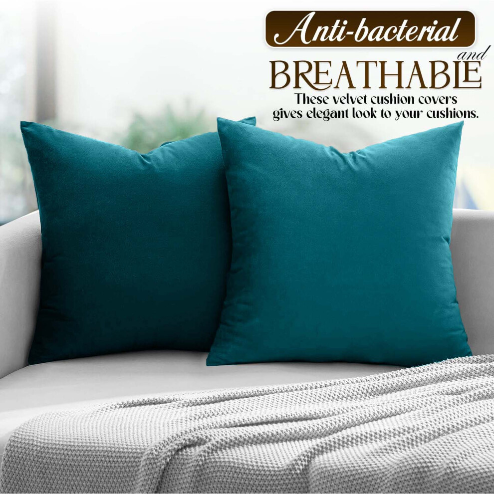 (18"X18" (Pack of 2), Teal Plain) Velvet Cushion Covers Decorative Throw Pillowcase