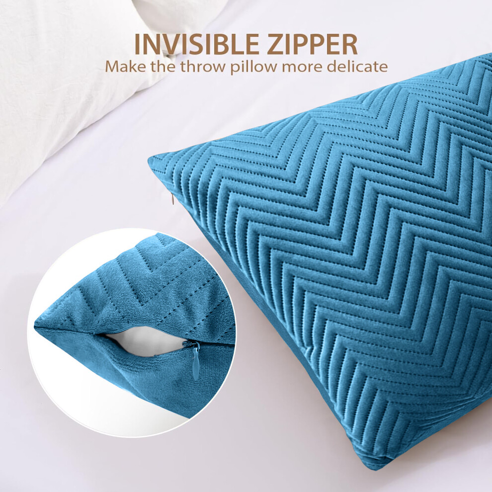 (Pack of 4, Embossed Teal Cushions) Velvet Cushion Covers Soft Luxury Embossed Stripe Quilted Cushions Pack of 1,2 & 4