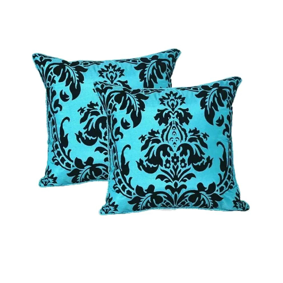 (TEAL-BLACK) Luxury Cushion Covers English Damask Flock Sofa Pillowcases 17"X17"