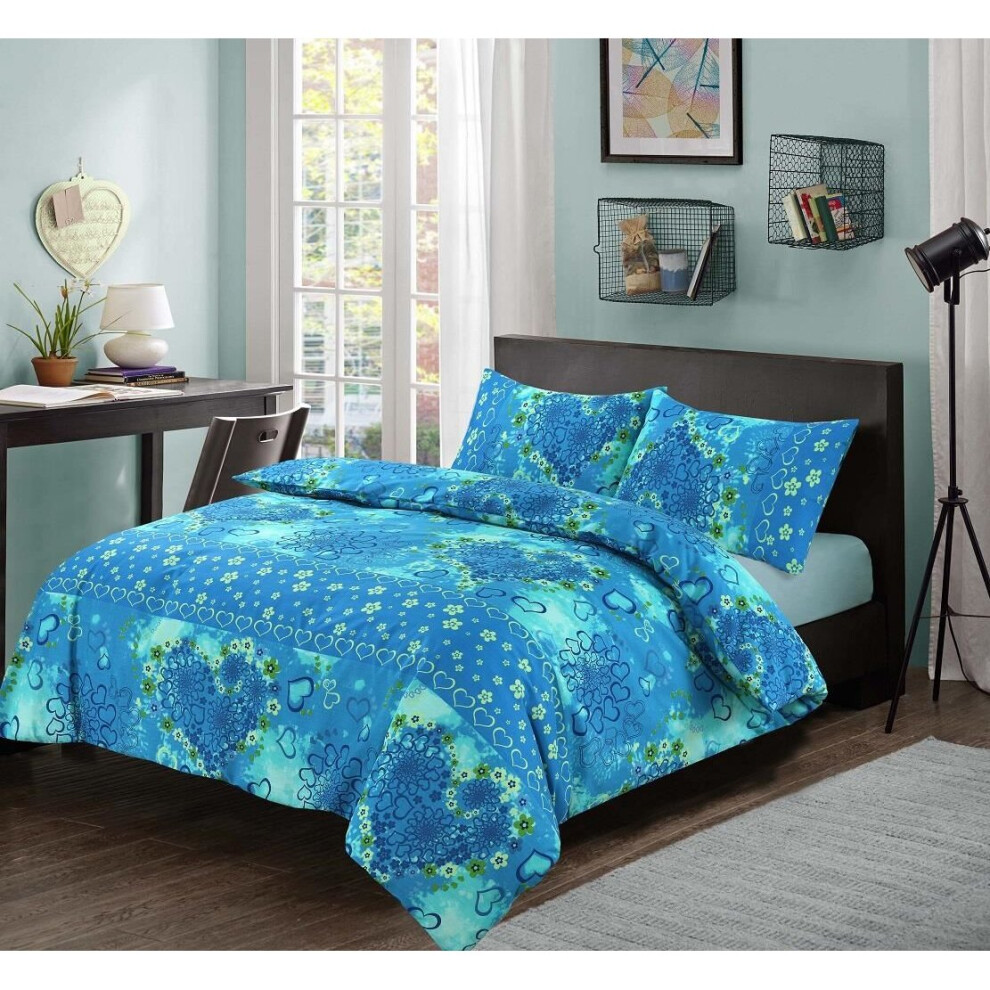 Kampala Hill Jasmin Teal Super Kingsize Duvet Cover Set Polycotton Hearts Colourful Bedding