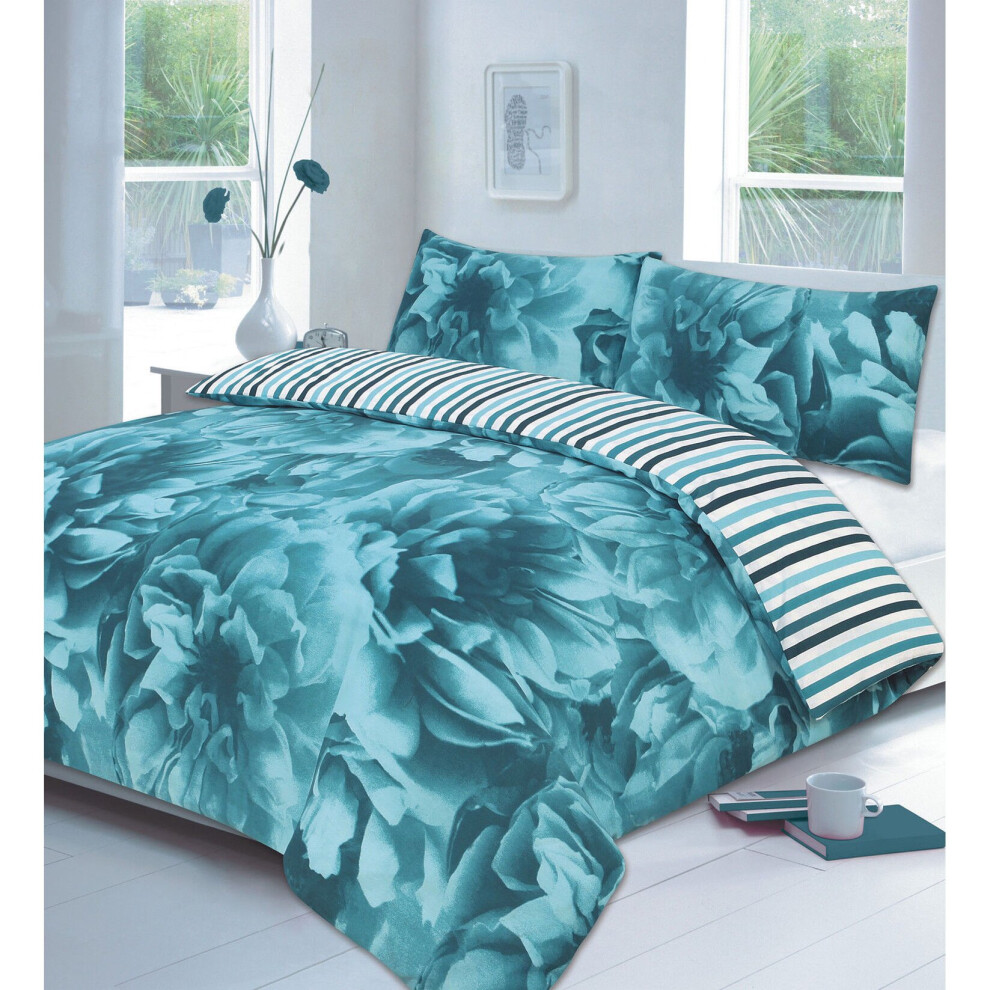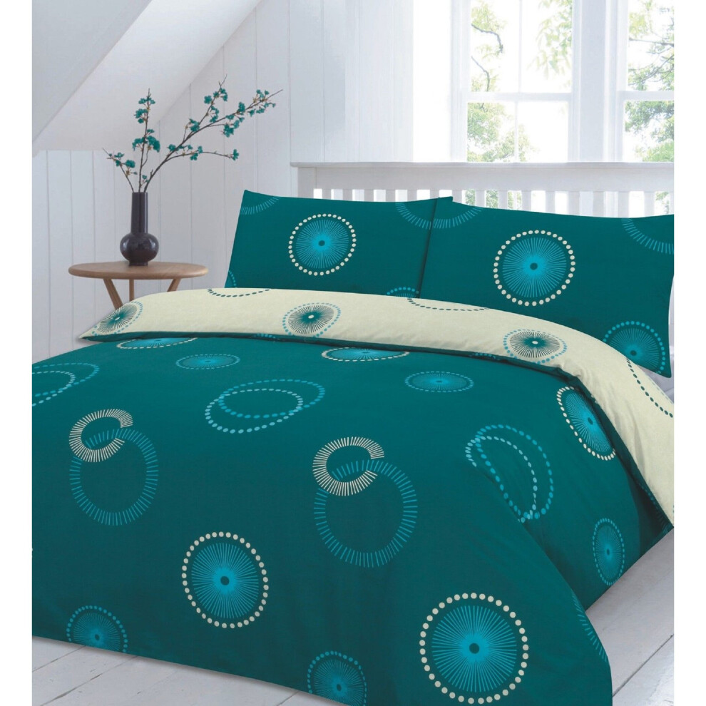 (Teal, Double) PRINTED DUVET COVER SET POLY COTTON QUILT BEDDING SET