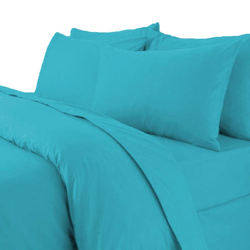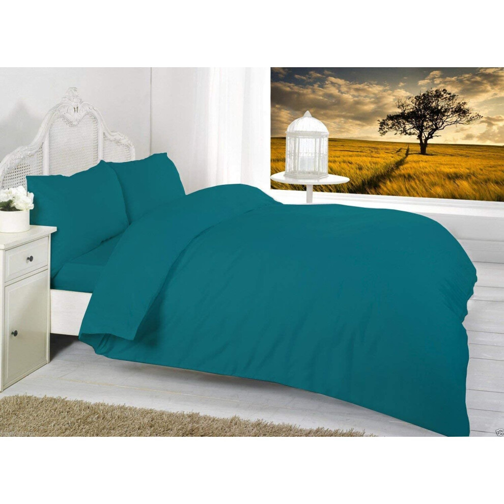 (Super King, Teal) Plain Duvet Quilt Cover & Pillow Case Bedding Set