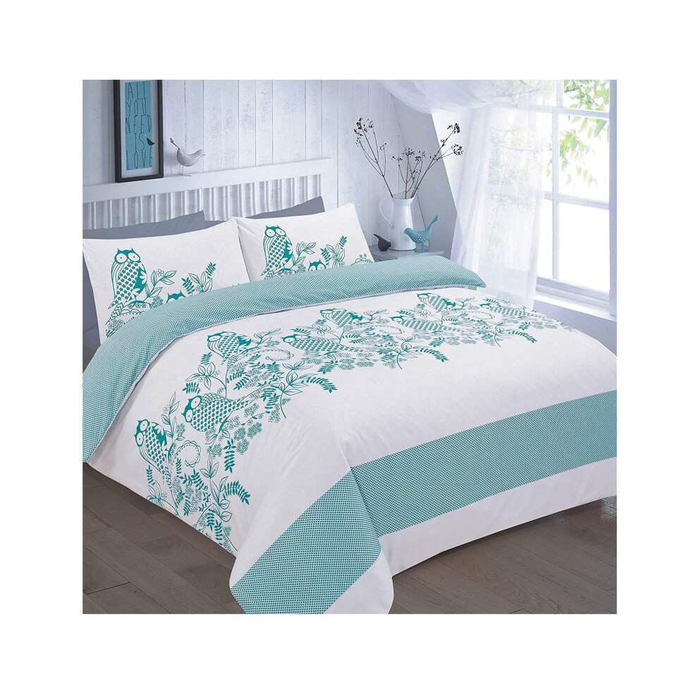 Excellent Hotel Quality King Owl Print Teal Design Duvet Cover Set Bedding Set with pillowcases - King Size