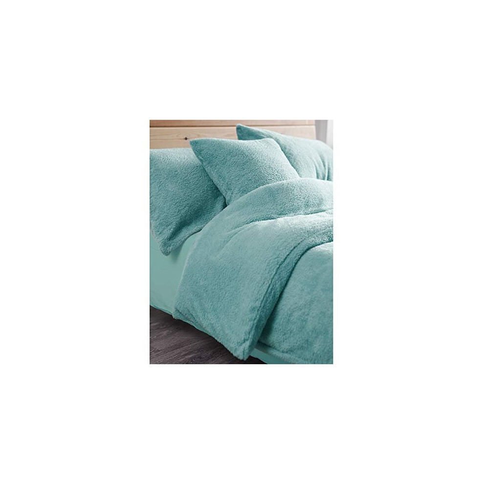 Duvet Cover with Pillowcases New Soft Warm Fleece Bedding Set (Teddy Teal, Super King Duvet Cover Set)