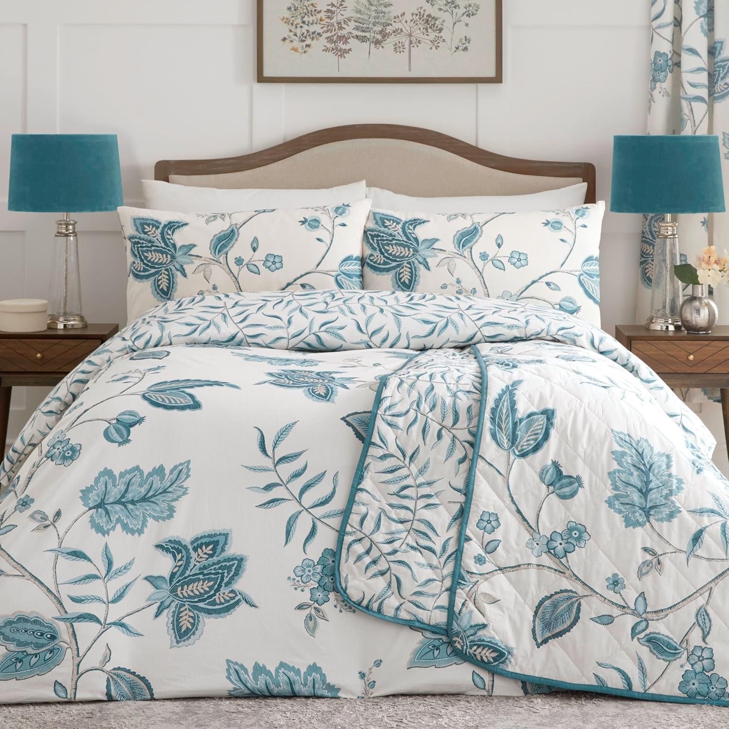 Dreams & Drapes Teal Floral Duvet Cover Set – King Size 230x220cm – Turquoi
