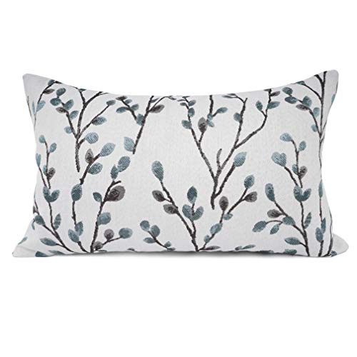 YOUR SMILE Classical Embroidery Jacquard Farmhouse Oblong Rectangle Chenille Teal Leaf Decorative Throw Pillow Case,12x20 inch