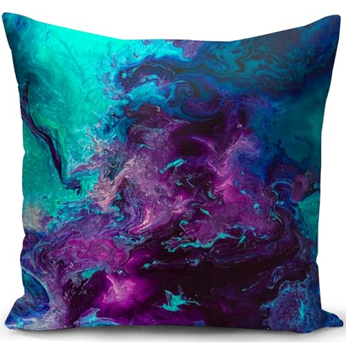 KUNQIAN Cushion Cover Purple Teal Turquoise Throw Pillow Case Galaxy Decorations Gift Decor Home Livingroom Couch Sofa 18"x18"(45x45cm)