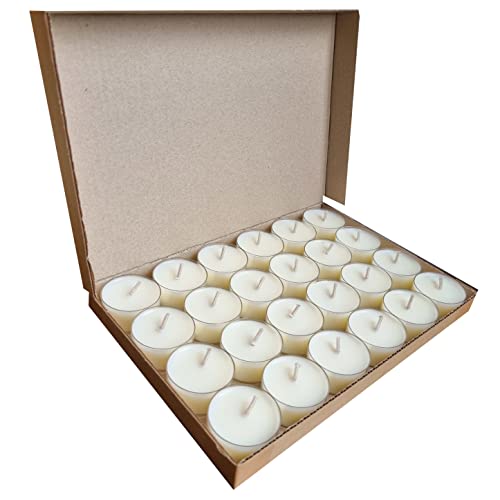 24 Natural Unscented 100% Vegetable SOY WAX Tealight Candles Minimum 4 Hours Burn Time Paraffin-Free Non-Toxic Vegan Tealights in Clear Cup for Oil Burner & Wax Melter