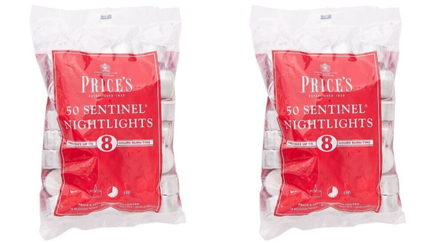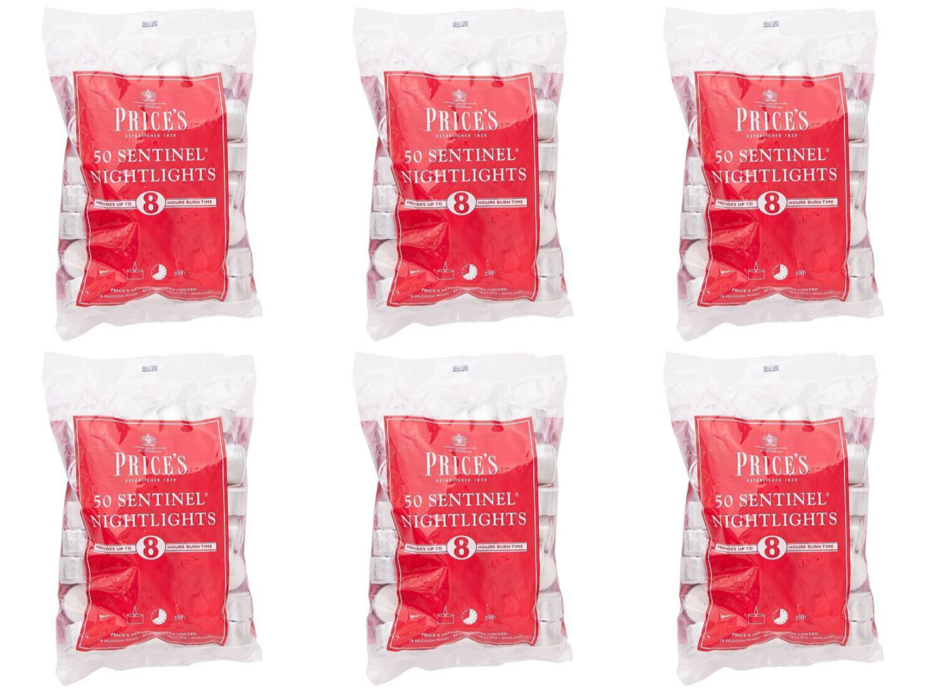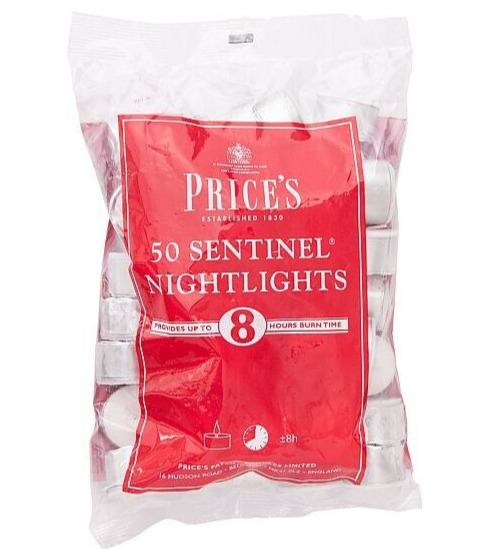 50x Price's Sentinel Nightlights Tealight Candles - 8 Hours Burn Time - White