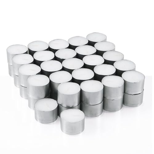 Ikea 100pk Tealight Candles, 4 Hours Burn Time, Paraffin/Vegetable Wax, Silver, Modern Style, Indoor Use, 100 Wicks, 50.4g Each, 400 Hours Holding Time