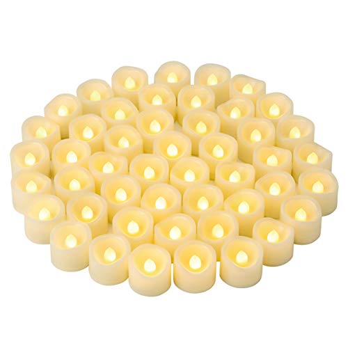 Aku Tonpa 50 Pack Lasts 2X Longer White Realistic Battery Operated Flameless Flickering Tealight Candles, Batteries Included