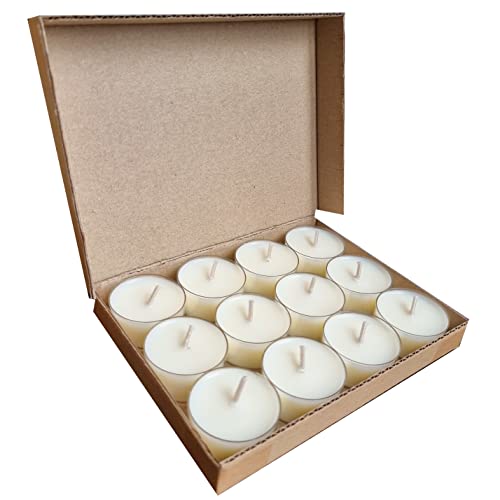 12 Natural Unscented 100% Vegetable SOY WAX Tealight Candles Minimum 4 Hours Burn Time Paraffin-Free Non-Toxic Vegan Tealights in Clear Cup for Oil Burner & Wax Melter