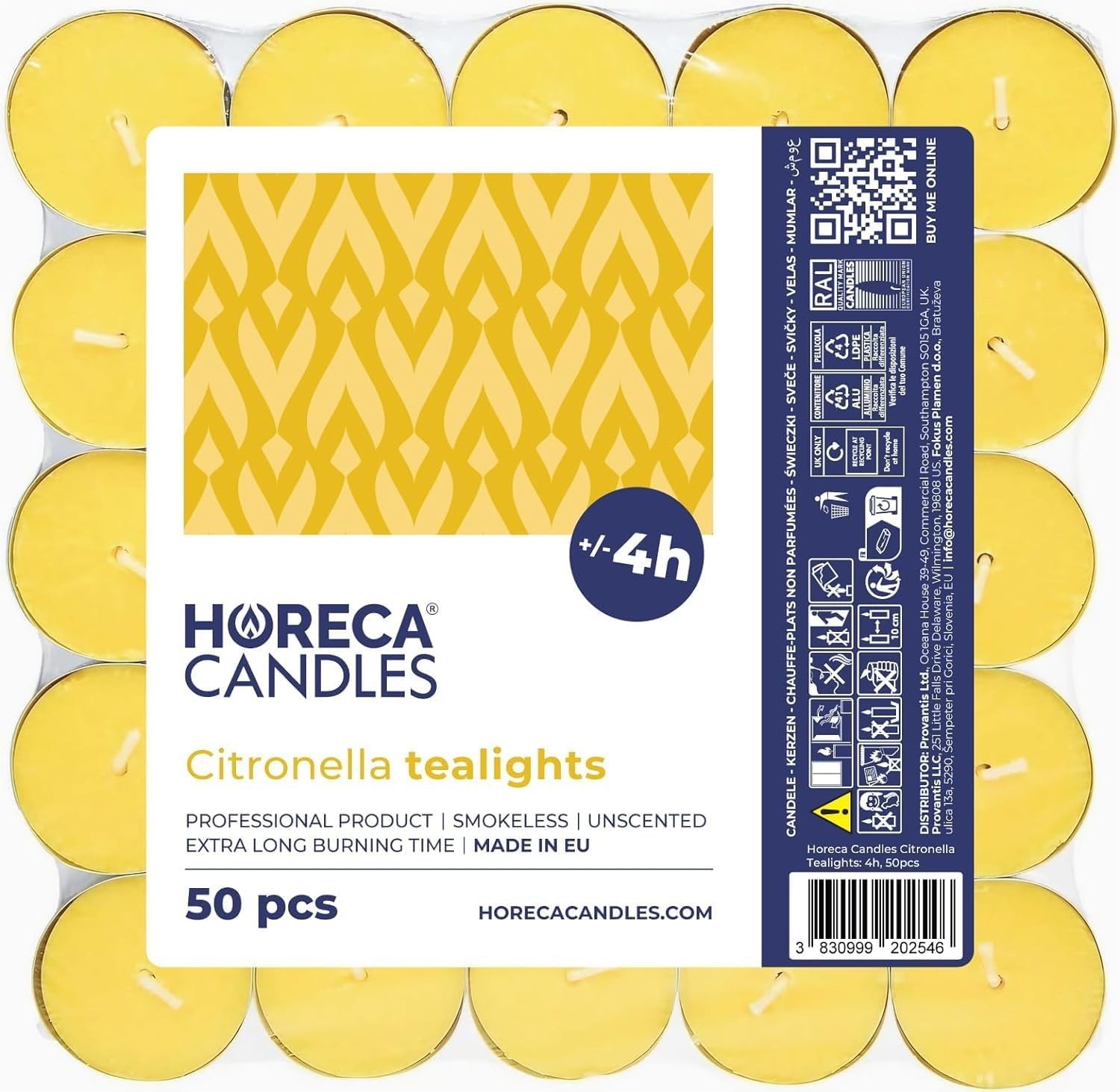 Horeca Candles - Citronella Tealight Candles - Pack of 50 Scented Long Lasting