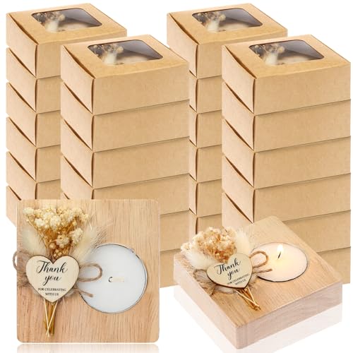 Menkxi 24 Sets Wedding Wooden Tealight Candles Holders Bulk Wedding Party Favors for Guests Square Thank You Candle for Anniversary Engagement Table Centerpiece Bridal Shower Baby Shower (Light Wood)
