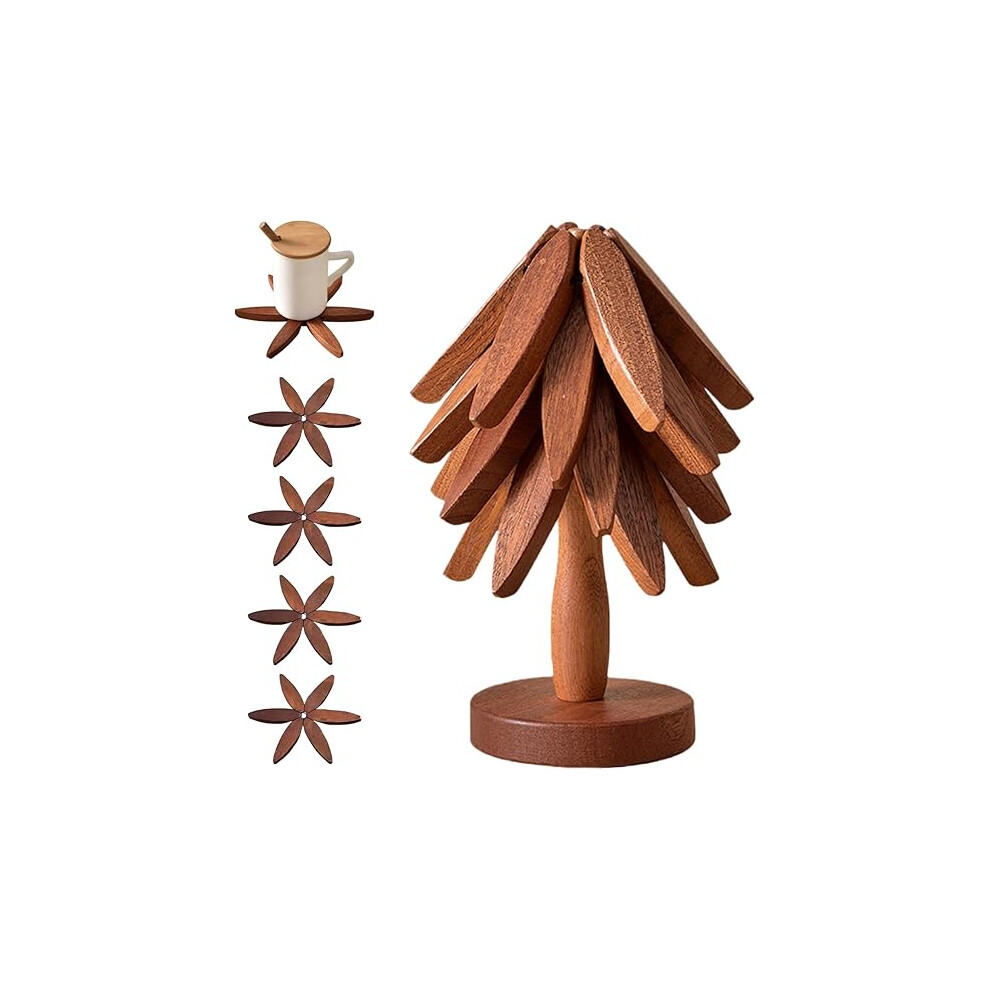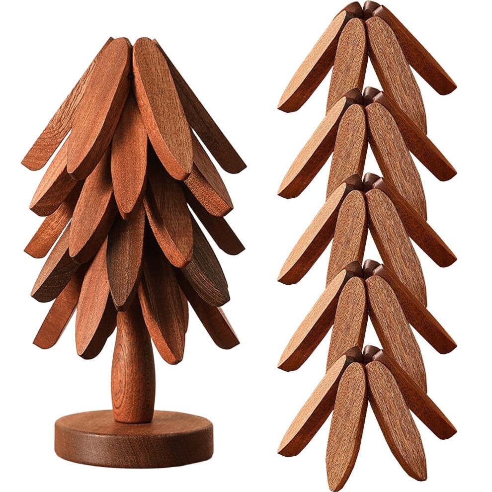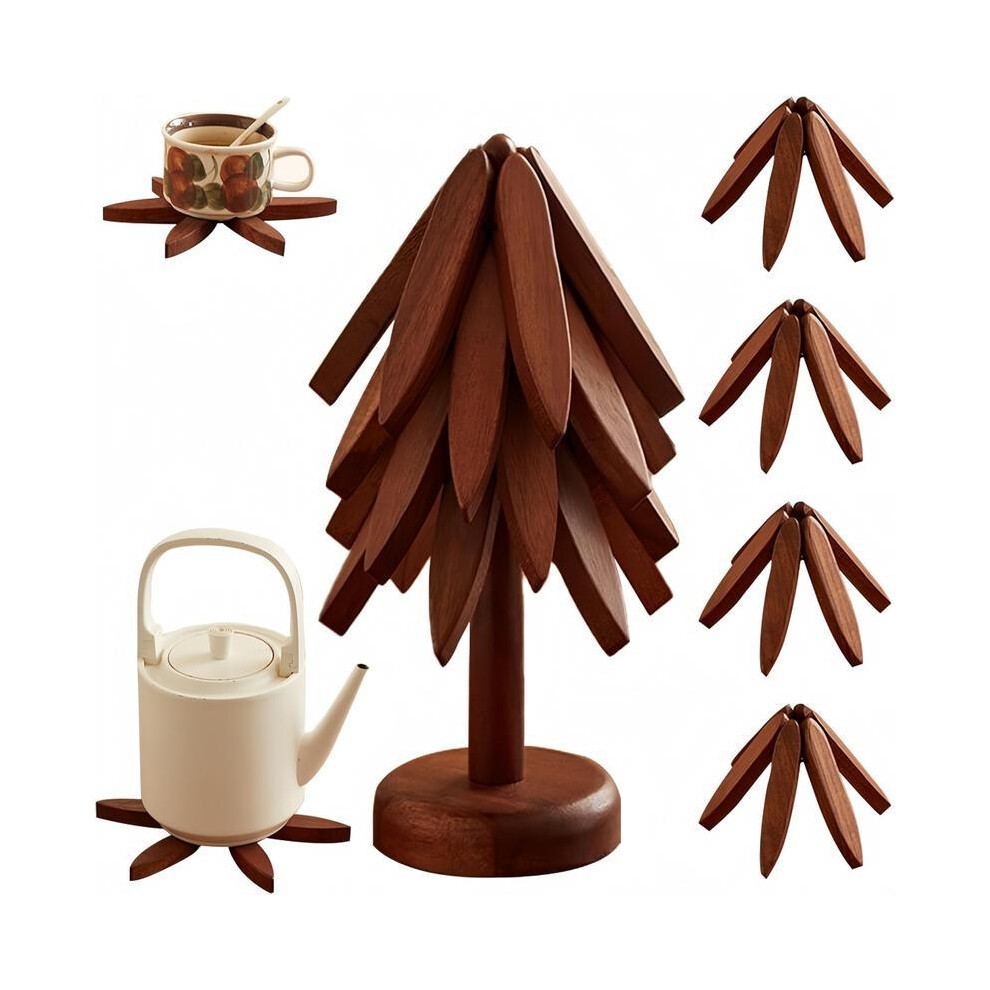 Wooden Tree-Shaped Trivet Set (1 Base + 5 Pads), Heat-Resistant Coaster for Hot Pots, Teapots & Dishes â Compatible with Standard Cookware