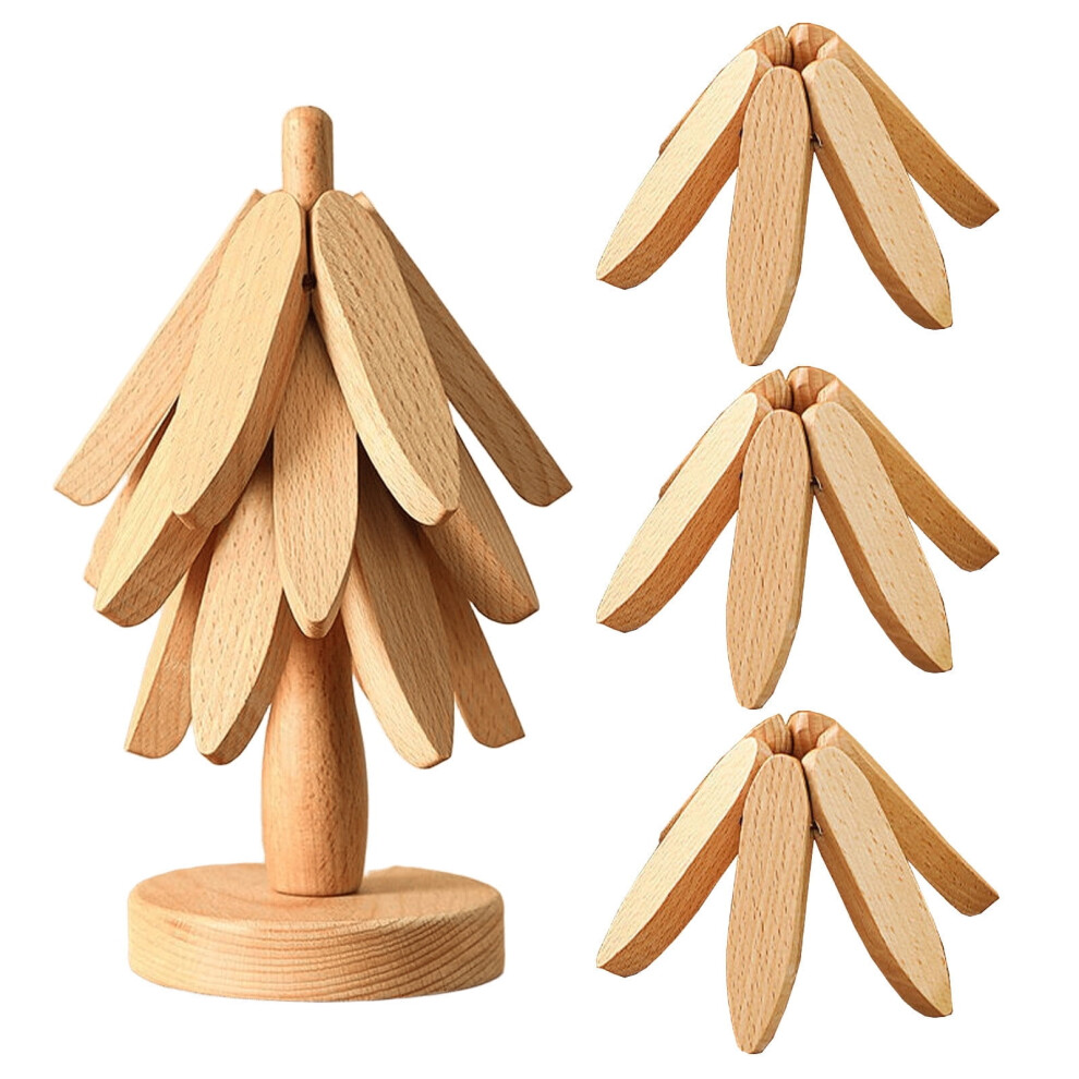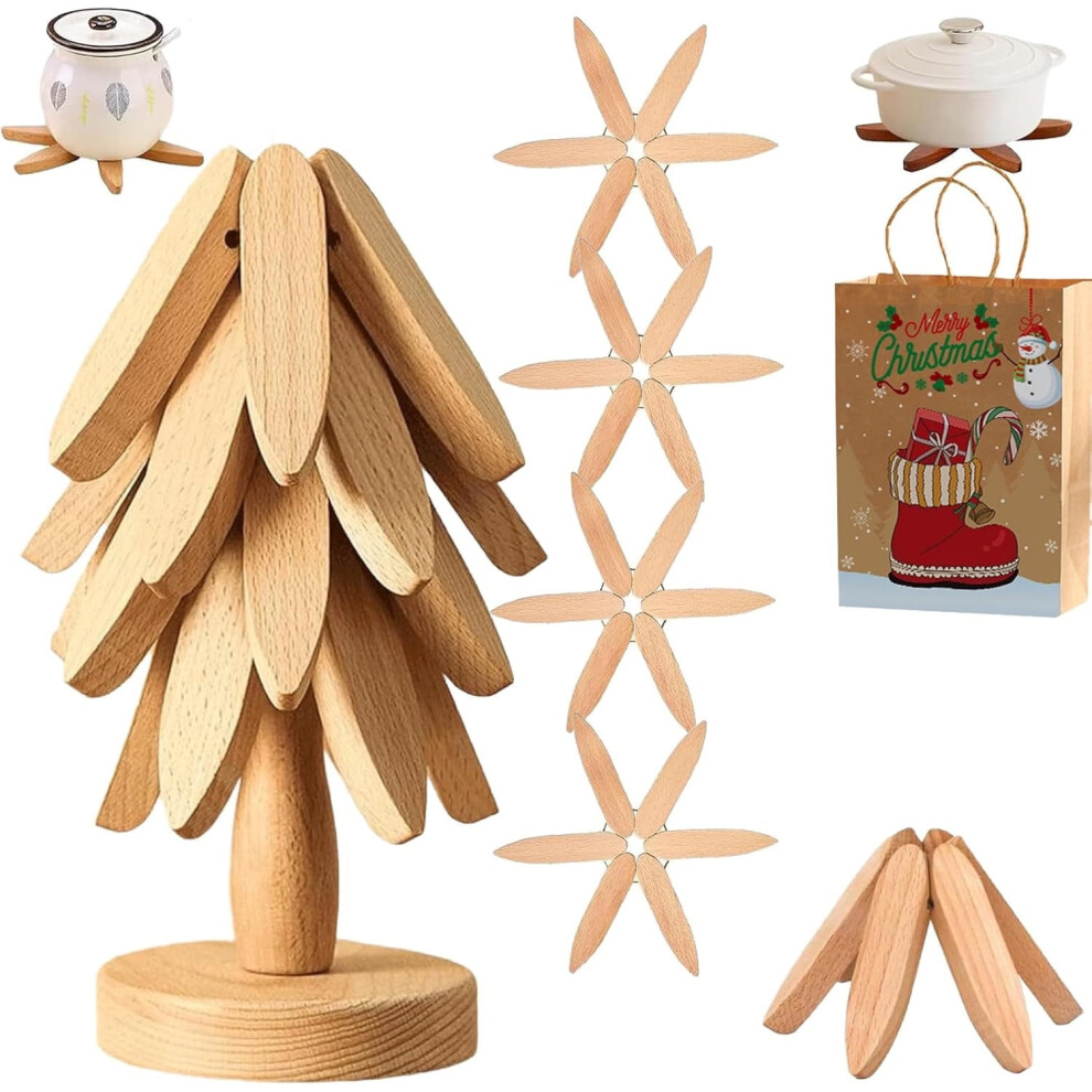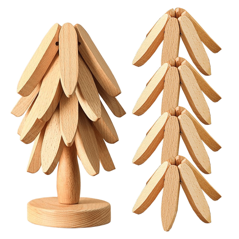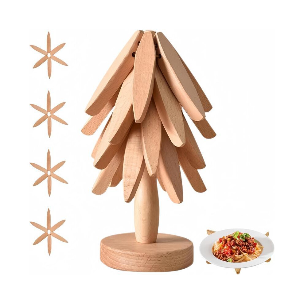 Wooden Tree-Shaped Trivet Set (1 Base + 5 Pads), Heat-Resistant Coaster for Hot Pots, Teapots & Dishes â Compatible with Standard Cookware